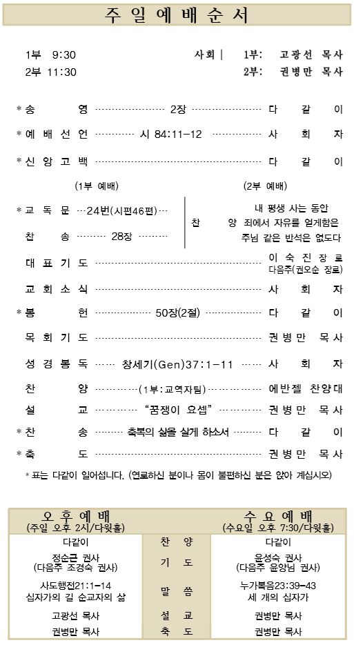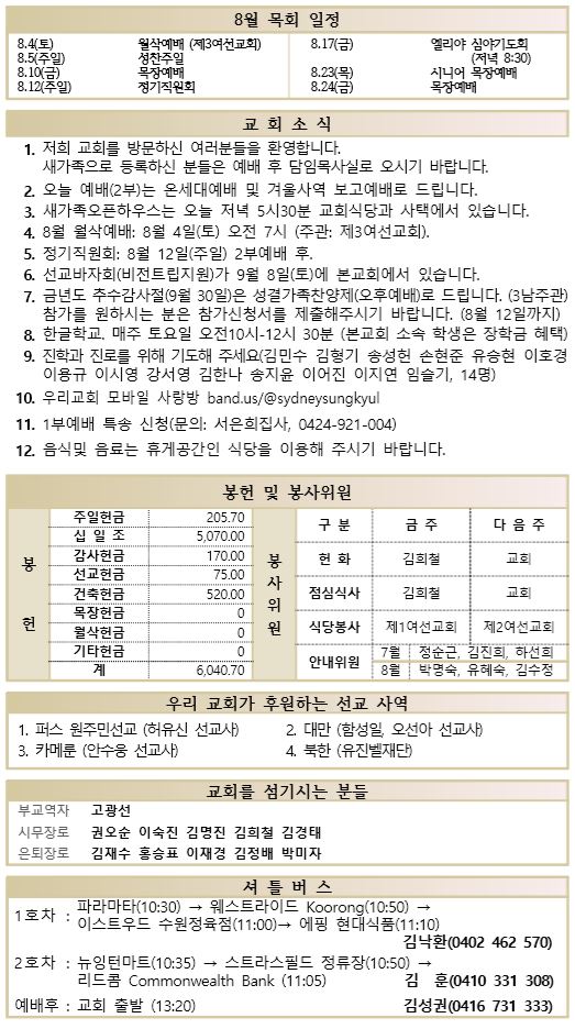 8.5 예배순서와 교회소식