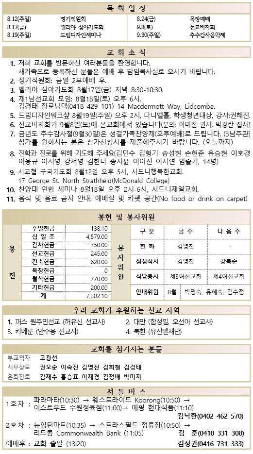 8.12 예배순서와 교회소식