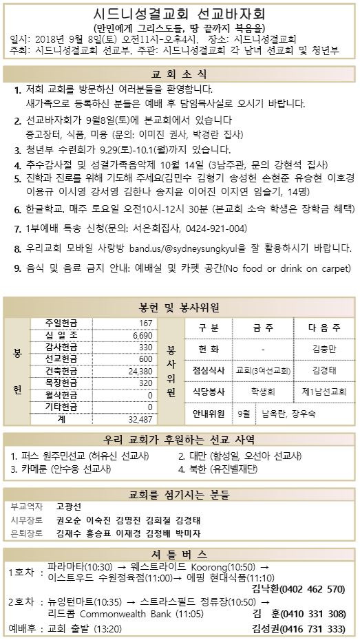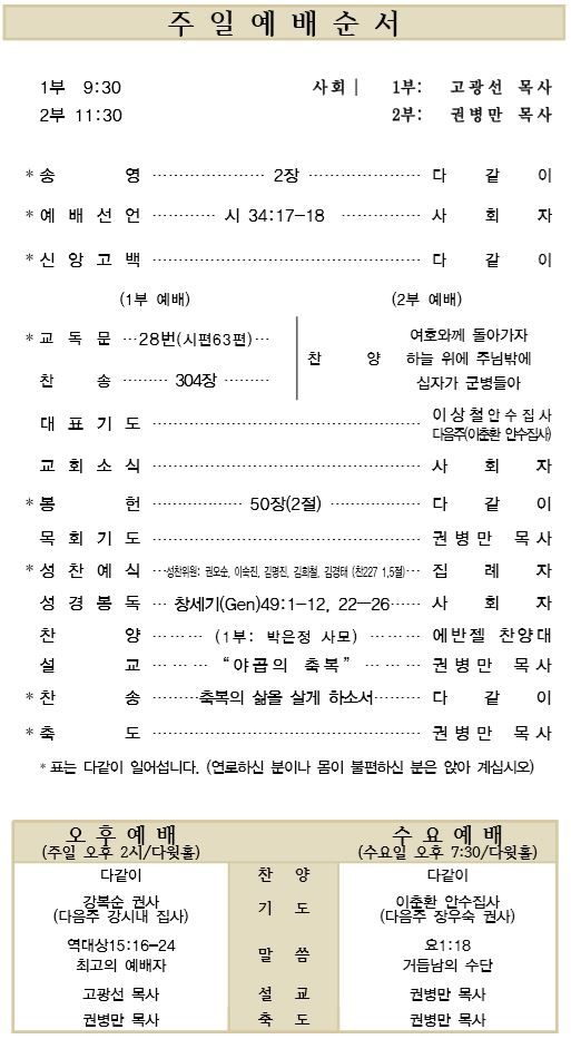 9.9 예배순서와 교회소식