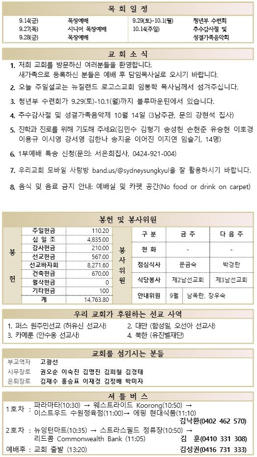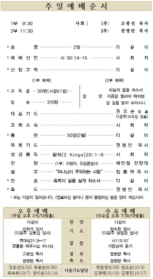 9.9 예배순서와 교회소식