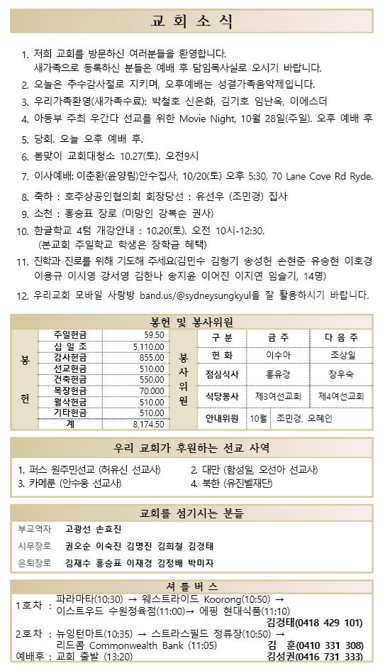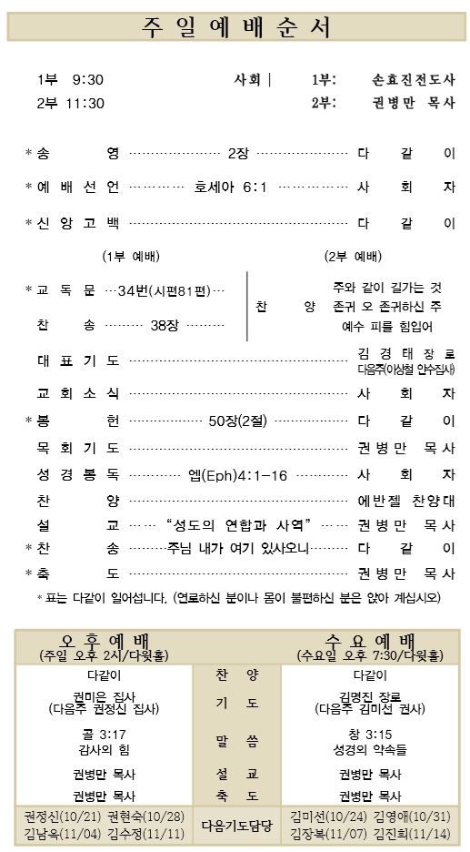 10.14 예배순서와 교회소식