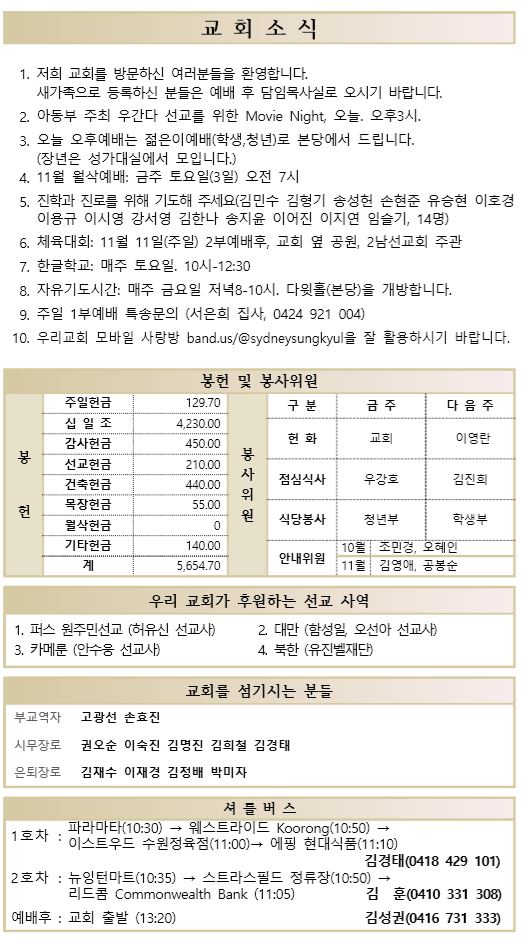 11.4 예배순서와 교회소식
