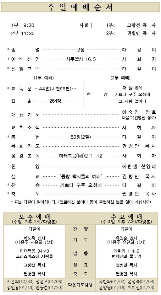 12.30 예배순서와 교회소식
