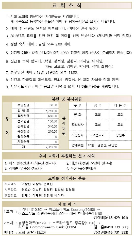 12.16 예배순서와 교회소식