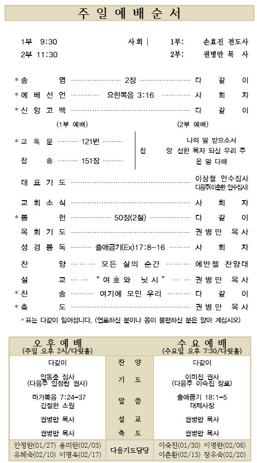 02.03 예배순서와 교회소식