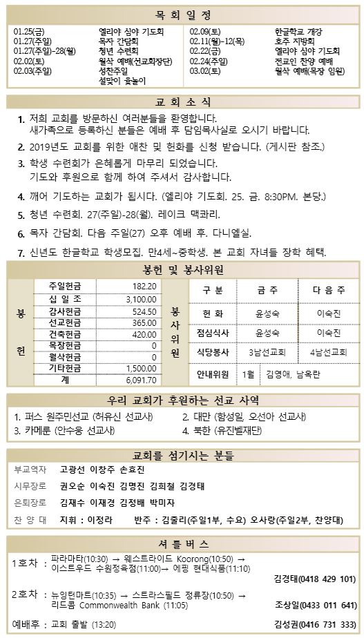 01.20 예배순서와 교회소식