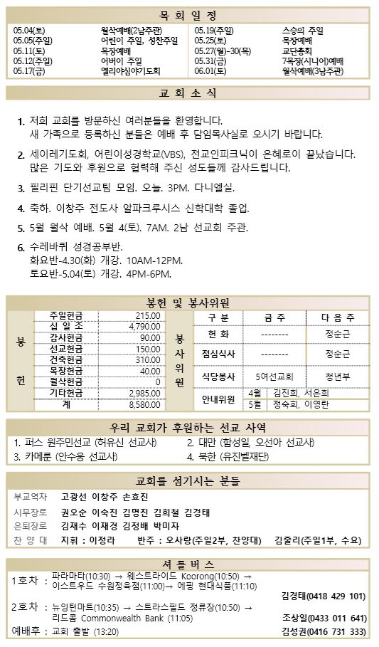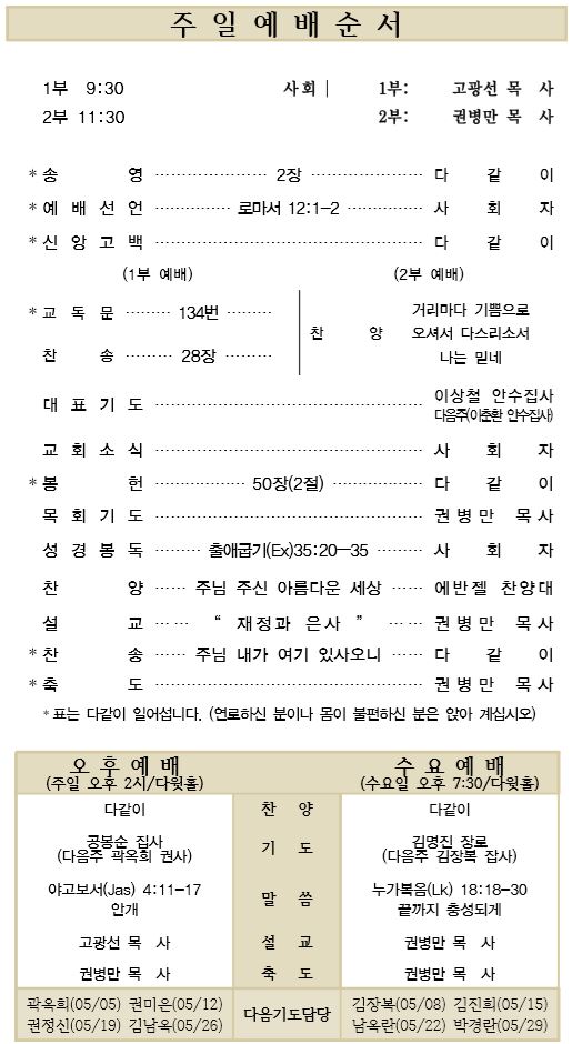 05.05 예배순서와 교회소식