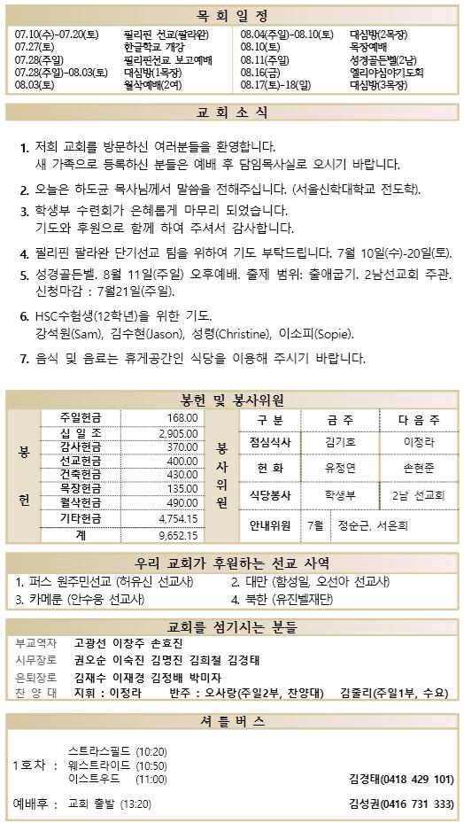 07.07 예배순서와 교회소식