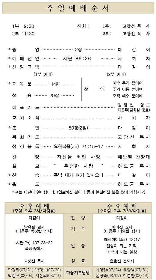 07.21 예배순서와 교회소식