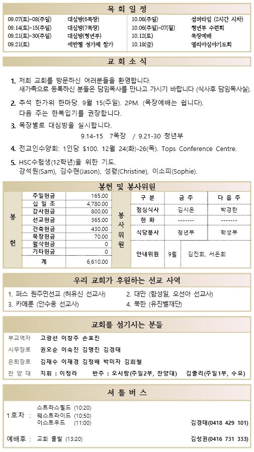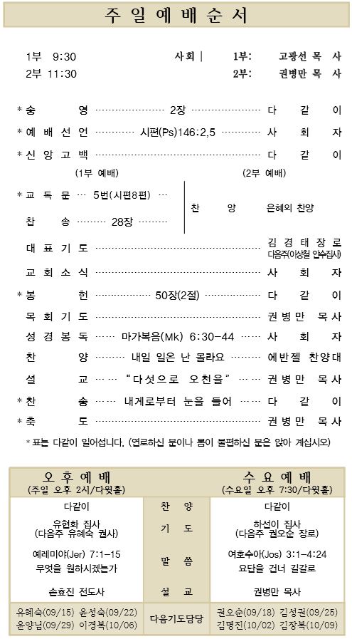09.15 예배순서와 교회소식