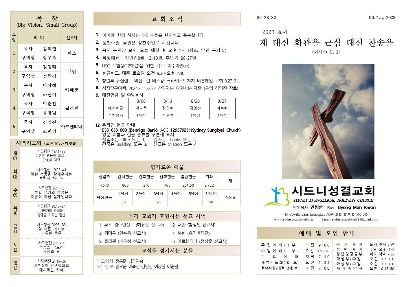 8.6 예배순서와 교회소식
