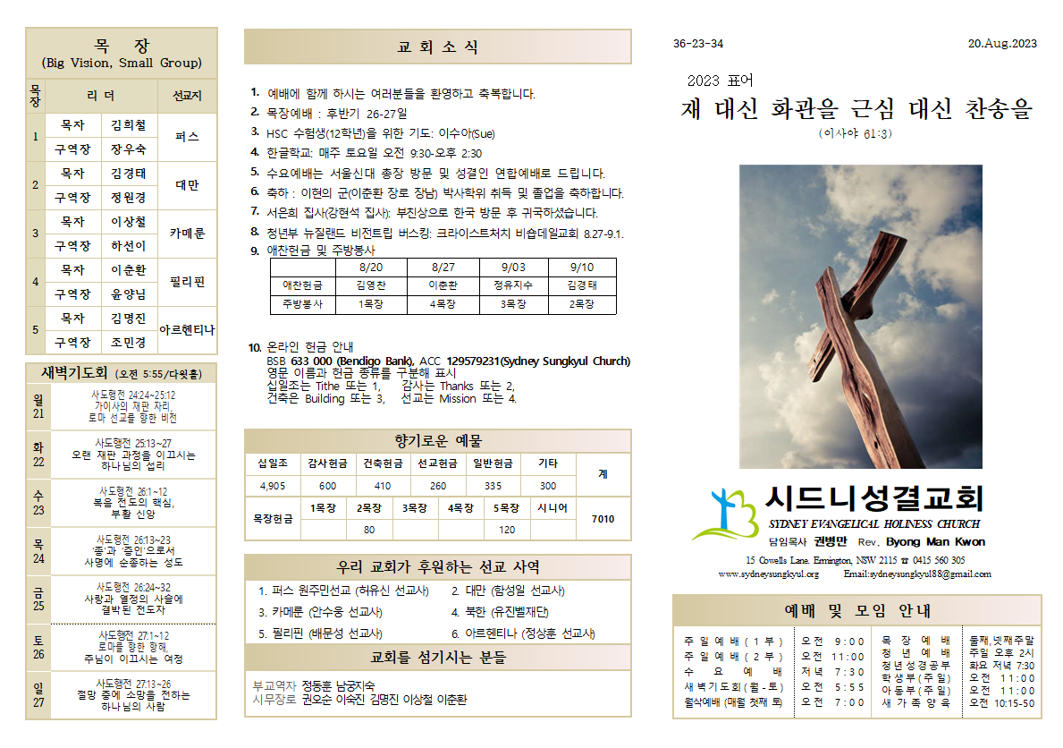 8.27 예배순서와 교회소식
