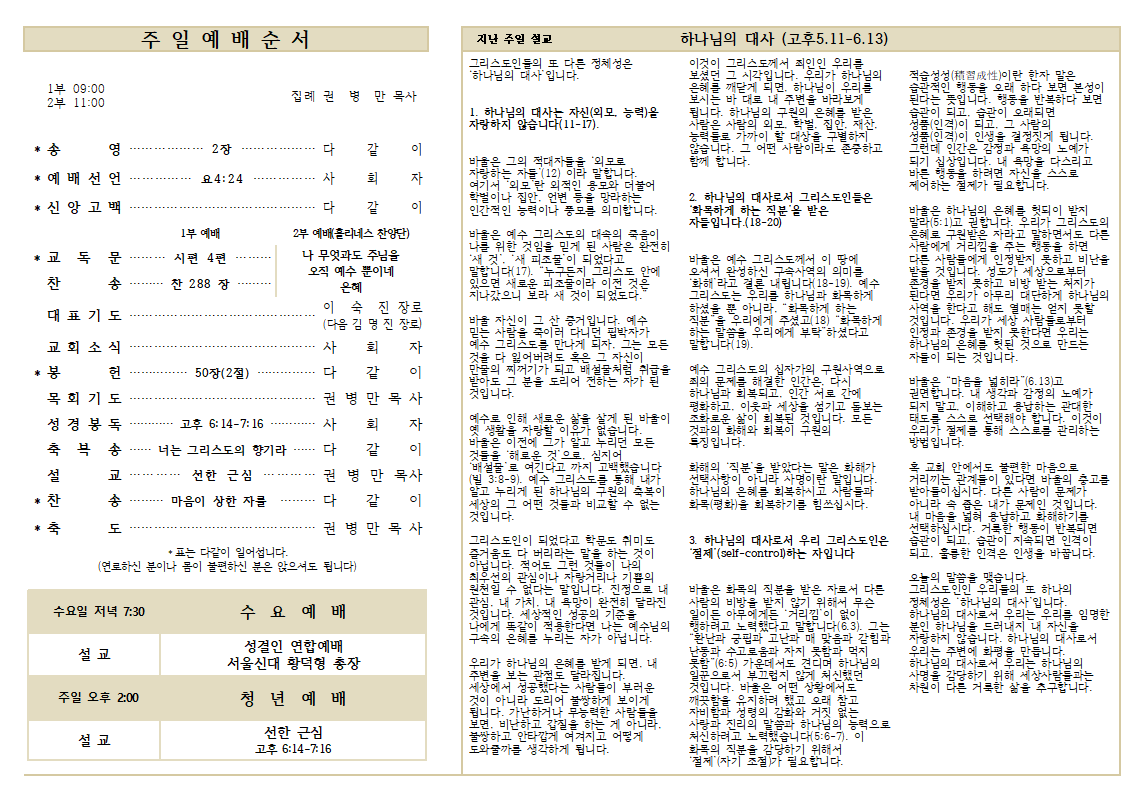 8.13 예배순서와 교회소식