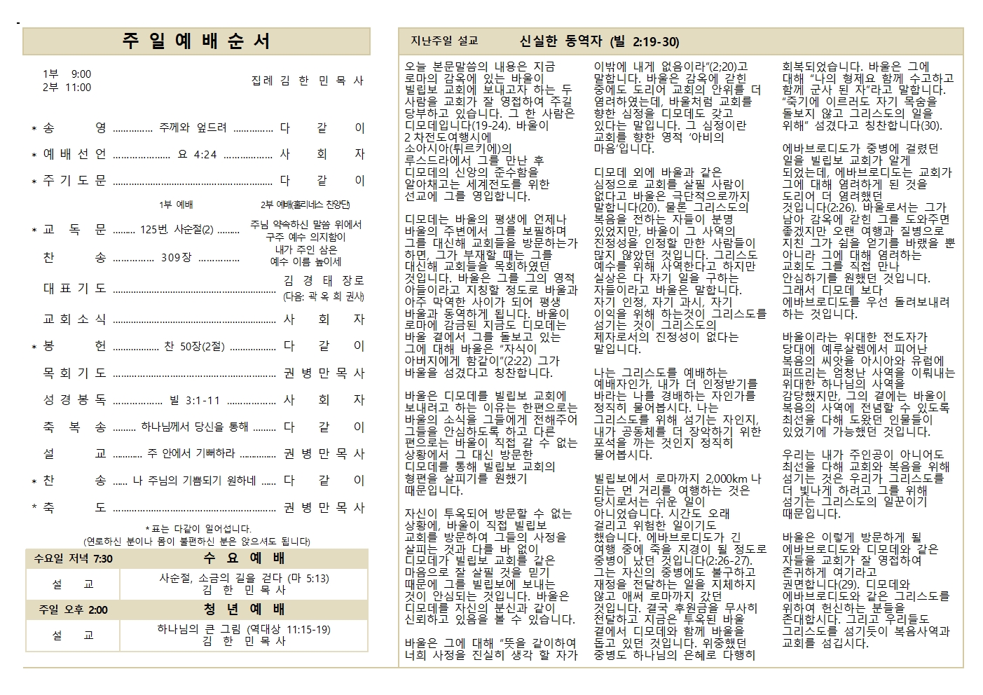 03.01 예배순서와 교회소식