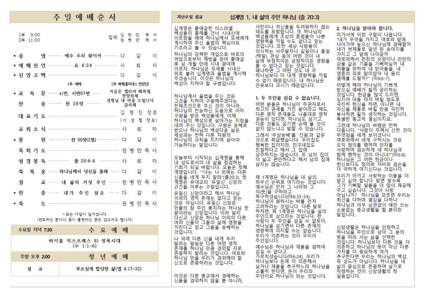 9.1 예배순서와 교회소식
