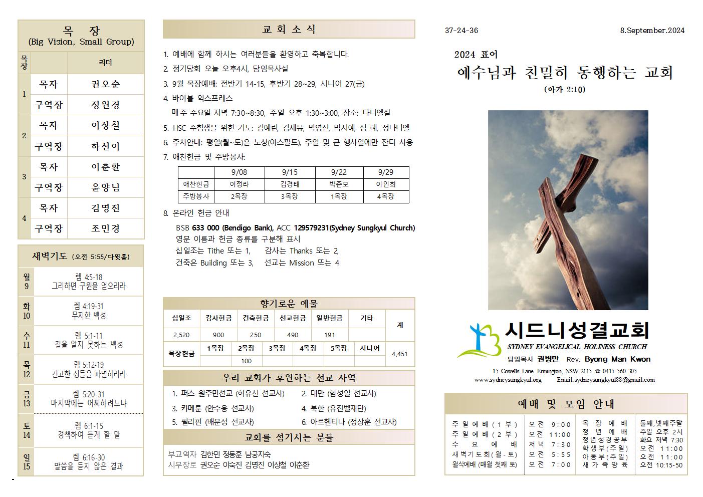 9.15 예배순서와 교회소식
