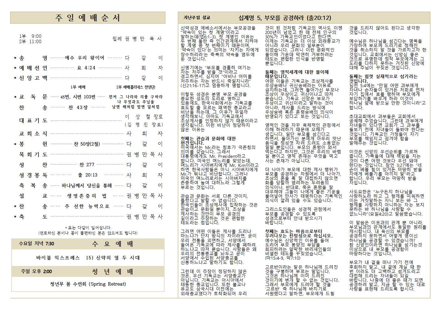 10.13 예배순서와 교회소식