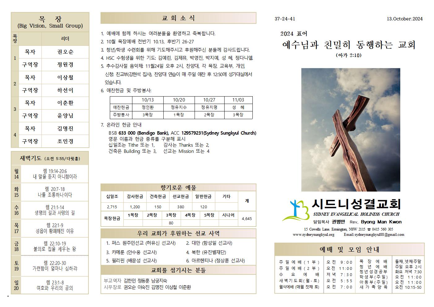 10.13 예배순서와 교회소식