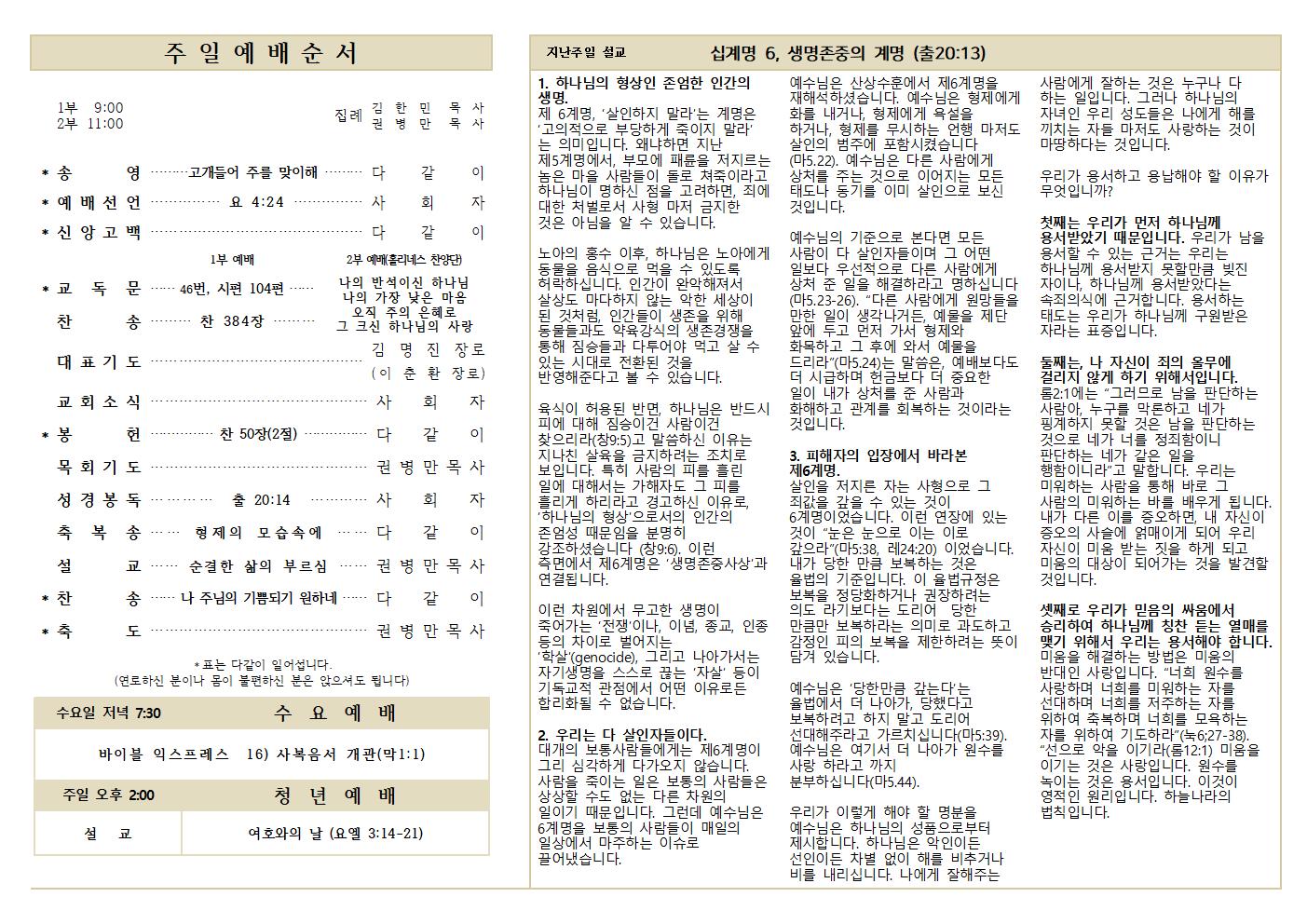 10.06 예배순서와 교회소식
