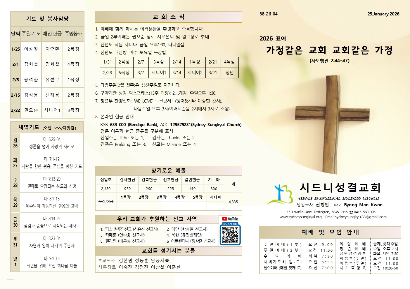 01.25 예배순서와 교회소식