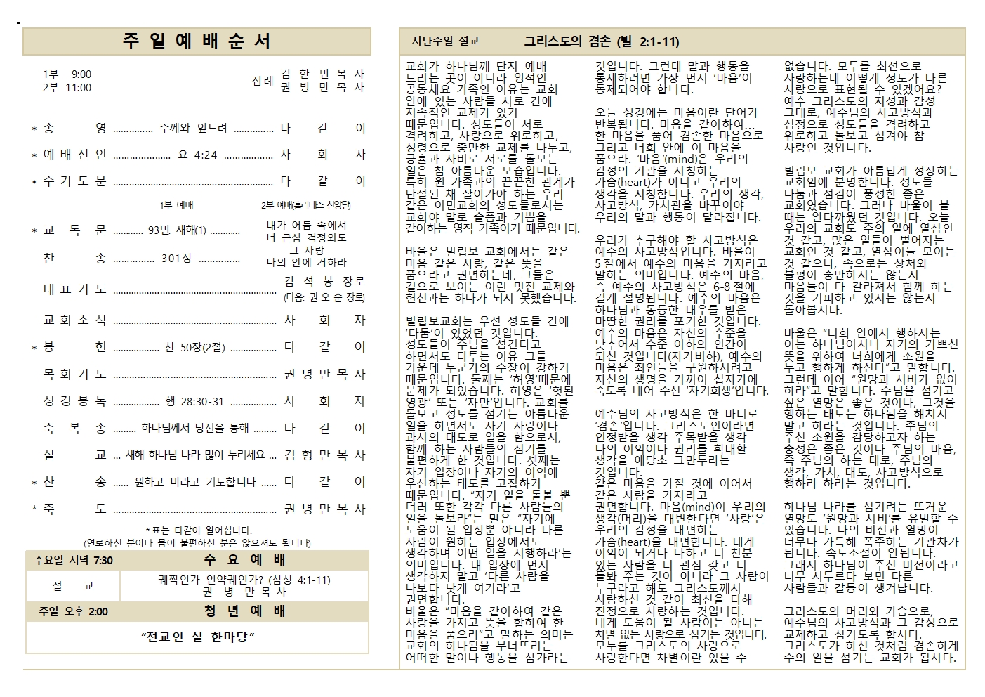 02.15 예배순서와 교회소식