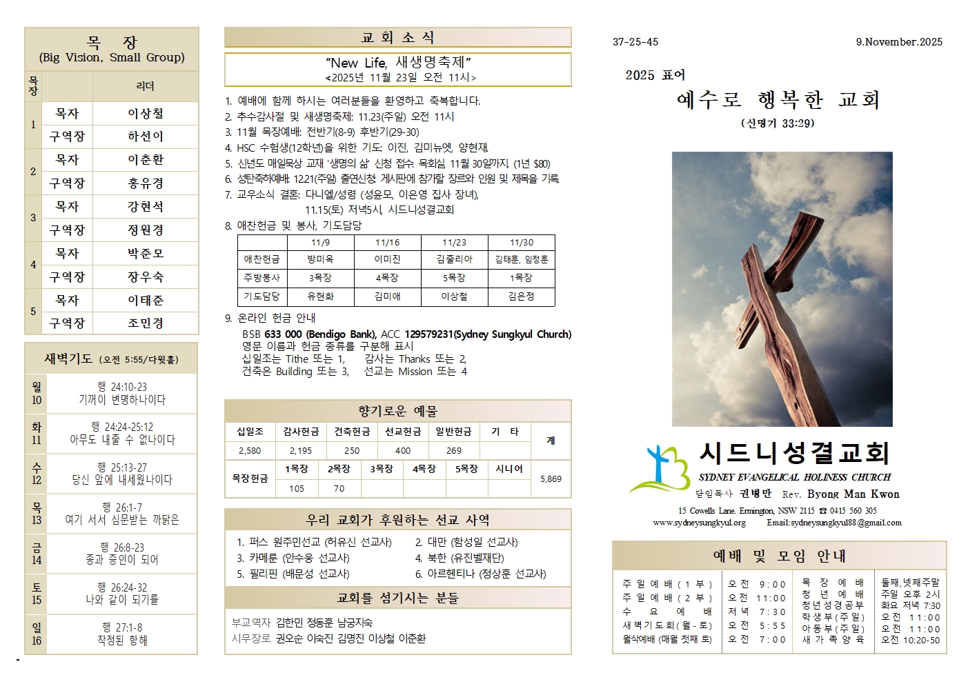 11.09 예배순서와 교회소식